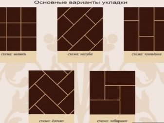 يعتمد نمط التمديد على نوع البلاط. عادةً ما يتم إزاحة المنتجات المستطيلة ، بينما يمكن وضع المنتجات المربعة بشكل متساوٍ قدر الإمكان. يمكن أن يكون التمديد قطريًا ومستقيمًا. إذا تم استخدام الطريقة العائمة ، فعادةً ما تكون هناك حاجة إلى الترميز: يتم تنفيذ التمديد من اليسار إلى اليمين ، ويبدأ من الزاوية البعيدة للغرفة.