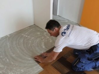 من الضروري التأكد من عدم وجود فقاعات هواء بين الأرضية والمنتج ، ومن أجل ملاءمة أفضل ، يمكنك لفها من المركز إلى الحواف ، باستخدام بكرة خاصة لهذا الغرض – وبهذه الطريقة يمكنك إزالة الغراء الزائد و هواء. من الممكن استخدام لوح من الفلين بدلاً من الأسطوانة. يجب مسح المادة اللاصقة الزائدة عن السطح على الفور باستخدام قطعة قماش مبللة بالكحول.