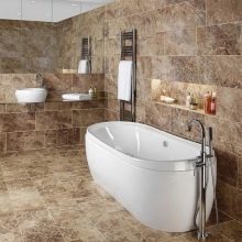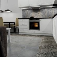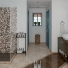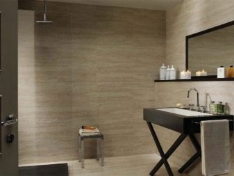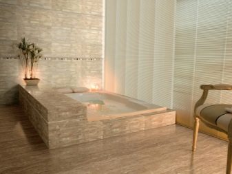 لن يصبح البلاط المصنوع من رقائق الجرانيت تصميمًا رائعًا فحسب ، بل سيكون أيضًا دعمًا موثوقًا للأقدام في الحمام أو في المطبخ. يتعرض الديكور في هذه الغرف للرطوبة ودرجات الحرارة المرتفعة. تبقى البقع والجزيئات الصغيرة من الحطام على سطح البلاط ، مما يجعل المادة سهلة التنظيف من الأوساخ العنيدة.