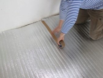 - بعد ذلك ، قم بتركيب الركيزة تحت الصفيحة. يجب أن يتم لف لفة المواد وتعديلها وفقًا لطول الغرفة. يجب ألا تسمح بالزلاقات وظهور عيوب مختلفة. يجب تكرار الخطوات حتى يتم وضع الركيزة بالكامل. لمعالجة المفاصل ، يجب عليك استخدام شريط ورقي.