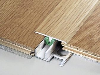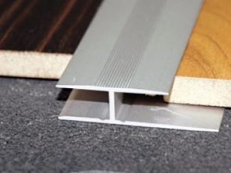 - خاص للأرضيات الخشبية. تشمل هذه الفئة حواف مصنوعة من MDF أو الألومنيوم (متعدد المستويات وأحادي المستوى). لديهم ملف تعريف خاص Z- ، H- ، F- ، G. بمساعدة هذه التراكبات ، يتم ربط المواد المتجانسة من نفس الألوان أو الألوان المختلفة والكثافة والسماكة. هذه العتبات مثالية لإنشاء فواصل التمدد. تم إصلاحها فقط بطريقة مغلقة..
