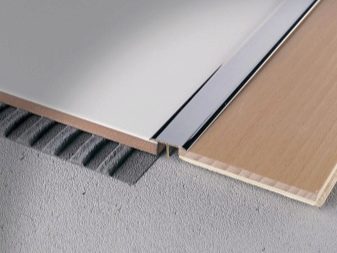 - أخير. يتم استخدام شريط الإرساء هذا عند تأطير حواف الأرضيات في الردهة. في كثير من الأحيان ، يتم استخدام هياكل مماثلة في تصميم أغطية الأرضيات المرتفعة ، على سبيل المثال ، بالقرب من السلالم أو الدرجات أو عند التقاطع الذي يقسم لوجيا أو شرفة (عتبة الشرفة).
