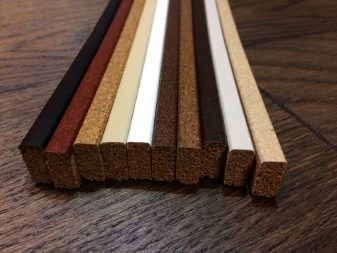 بشكل منفصل ، الأمر يستحق تسليط الضوء عليه عتبات الفلين. يمكن تسمية هذه المنتجات بأمان بأنها عالمية ، لأنها مصنوعة حسب الطلب من أي شكل وبنية على الإطلاق. تكون عتبات الفلين إما شريطًا منفصلاً أو شريطًا ثلاثي الطبقات خاصًا ، حيث يتم الانتهاء من الحواف بالخشب. بطريقة أخرى ، تسمى هذه الخيارات تعويضية.