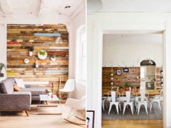 بالنسبة للشرفة أو لوجيا ، فإن زخرفة الجدران بالصفائح مفيدة ليس فقط بسبب جمالياتها التي لا شك فيها ، ولكن أيضًا بسبب الحفاظ على الحرارة. لمثل هذه الأماكن ، يجب أن تأخذ نسخة مقاومة للرطوبة من الطلاء أو تعتني بالعزل المائي الإضافي. في ردهة الشقة ، تحل الأرضيات الخشبية المشكلة التقليدية لتلوث الجدران ؛ يمكنك إما غلق إحداها أو تثبيت الألواح حول المحيط بأكمله على ارتفاع معين.