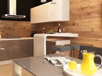 غالبًا ما يتم استخدام التصفيح في المطابخ لتغطية مآزر العمل ، بينما يوصى بإعادة إنتاج ظلال واجهات الأثاث. تضيف زخرفة الجدار بجوار منطقة تناول الطعام كلاً من الأصالة والتأثير الخارجي.