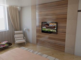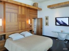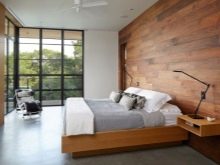 بالنسبة لغرف النوم ، تُستخدم الأرضيات الخشبية بشكل أساسي على الجدران عند رأس الأسرة ، ومرة أخرى ، يجب أن يكون مظهرها متطابقًا قدر الإمكان مع الأثاث. ستبدو غرفة المعيشة أكثر جاذبية إذا تم استخدام الأرضية على أحد الجدران..