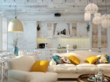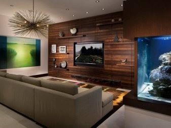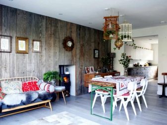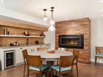 عندما يتم الجمع بين غرفة المعيشة والمطبخ ، فإن وجود صفائح على الجدران يسمح بتقسيم المناطق. ستكون المساحة التي يستريح فيها المضيفون ويستقبلون الضيوف مختلفة بصريًا عن تلك المخصصة للعمل مع الطعام. تحتوي العديد من الاستوديوهات الحديثة ، بدلاً من جدار كامل ، على فاصل من ألواح الجبس بين هذه الغرف. سيساعد شريط عريض من الصفائح على أحد الجدران ، ويمر إلى السقف مع إضاءة موضعية مدمجة ، على تمييزها بشكل أوضح عن بعضها البعض..