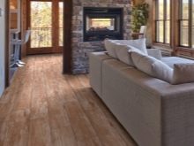 هناك الكثير من الخيارات لاستخدام الأرضيات الخشبية ، ولكن من بينها خيارات جذابة بشكل خاص. في المناطق الداخلية من البلاد ، يبدو الطلاء لائقًا بألوان الخشب الداكن ، مما يكرر بدقة مظهر سطح اللوح الخشبي. غرفة بروح شاليه سويسري مدمجة بشكل مثالي مع مواد بألوان “خشب الدردار” و “الجوز”. وفي بيئة بروفنسال ، من الأنسب تقليد مظهر الخشب القديم (اللون “بلوط مبيض” وما شابه).