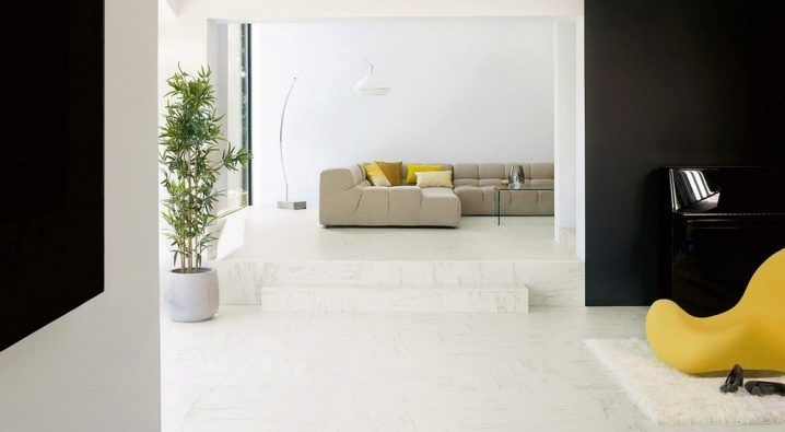 التقليلية هي عكس كل هذه الأشكال. الطبيعة ليست ذات قيمة عالية في ذلك. لذلك ، يجدر اختيار غطاء الأرضية على شكل خطوط ذات ألوان موحدة بيضاء أو سوداء أو رمادية..