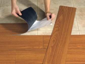 - ذاتية اللصق. تتم معالجة الجزء الخلفي من البلاط بمادة لاصقة تضمن ارتباطًا موثوقًا للمادة بسطح الأرضية.
