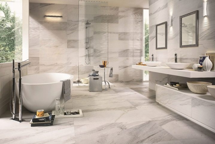 - الظل والملمس من البلاط. يتم الاختيار حسب التصميم الداخلي والتفضيل الشخصي.