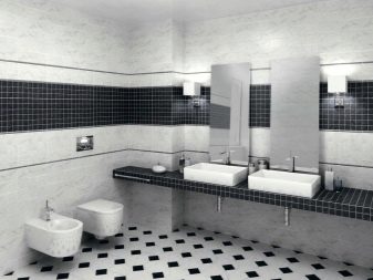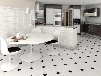 ومع ذلك ، فإن هذا الحل لا يعمل دائمًا. يمكن استخدامه ، على سبيل المثال ، في مطبخ تبلغ مساحته حوالي 5-6 أمتار مربعة. م ، بينما بالنسبة لغرفة صغيرة مثل الحمام ، فإن البلاط بمثل هذه الأبعاد سوف يدمر الداخل ببساطة.