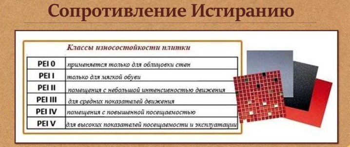 تقاس مقاومة التآكل للسيراميك المصقول على مقياس من خمس درجات رئيسية تسمى PEI. للاستخدام في الغرف التي يتحركون فيها بكثافة متوسطة وفي الأحذية العادية ، وكذلك التي لا تلامس الشارع ، يتم استخدام بلاط من الفئة 3 على هذا المقياس. إنه مخصص لجميع مناطق الشقة أو المنزل الخاص ويمكن استخدامه في مباني المكاتب الصغيرة أو الفنادق..