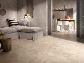 يمكن أن يكون الحل المحتمل هنا هو استخدام بلاط بأحجام مختلفة لغرفة واحدة ، عندما يتم وضع عنصر بطول جانب مربع يساوي 60 سم في وسط الغرفة ومحيطه الخارجي مصنوع من مستطيل كسوة مبلطة بأبعاد 30 × 20 سم ، مثل هذه المجموعات من الألوان والأبعاد المختلفة للبلاط ستمنح الأرضية أصالة إضافية.