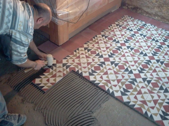 يوصى بتكديس جميع الأجزاء بالقرب من بعضها البعض قدر الإمكان حتى تبدو نظيفة. من المستحيل تسوية بلاط الأسمنت بمطرقة أو مطحنة ، لأن هذه الأدوات يمكن أن تفسد جودة المواد..