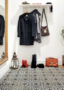 بفضل الموضة المغربية ، أصبح البلاط الأسمنتي جزءًا لا يتجزأ من المناطق الداخلية للعديد من المنازل. تبدو هذه النهاية رائعة على الأرضية في الردهة مع وحدة تحكم ومرآة جميلة. إناء من الزهور بأسلوب شرقي سيكون إضافة رائعة للتكوين.