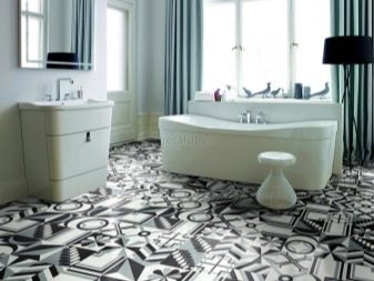 إذا لم تكن مغرمًا جدًا بالتشطيب المزخرف ، يمكنك اختيار بلاط بلونين أو أكثر لوضع الأرضية. سوف يتحول التصميم الأصلي للغاية. سيبدو الطلاء أحادي اللون أكثر إيجازًا وصرامة..