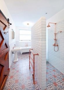 في المنازل الخاصة ، يتم استخدام بلاط الأسمنت ليس فقط لتزيين الأرضية ، ولكن أيضًا الجدران في الحمام. إذا أشعلت شموعًا برائحة اللافندر أثناء السباحة ، يمكنك أن تشعر وكأنك في المغرب. ومع ذلك ، فإن مثل هذا العدد من الأنماط المتنوعة لا يناسب ذوق الجميع. إذا كنت ترغب في تصميم حمام بأسلوب شرقي ، يمكنك تزيين جدرانه بالبلاط الأبيض. يمكن بناء نفس حوض الاستحمام في الفتحة ، مبطنة ببلاط أسمنتي..