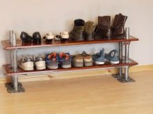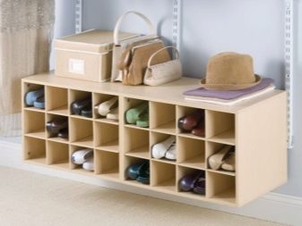 يمكن استخدام الأرفف أو الأدراج الصغيرة ذات الأحجام المختلفة (للأحذية والأحذية والأحذية والنعال ، وما إلى ذلك للكبار والأطفال ، وما إلى ذلك) ، معًا ، كرف للأحذية. إذا كان لديك الكثير من المواد المتبقية ، فيمكنك بناء رف أحذية مغلق مع حوامل.