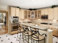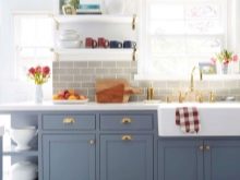 يبدو التصميم الداخلي بلاطًا أزرق وأزرقًا لامعًا ، مجتمعين في مناطق مختلفة من الغرفة. لذلك ، في المطبخ ، يمكن تقليم منطقة المريلة بالبلاط الأزرق ، ويمكن أن تكون منطقة تناول الطعام زرقاء. هذا التصميم الداخلي مع الزخرفة المناسبة مناسب لمطبخ على الطراز الشرقي..