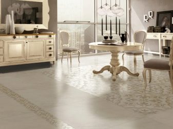 يجب أن يتناسب مظهر غطاء الأرضية بشكل متناغم مع الجزء الداخلي للغرفة. إذا قمت بتثبيته في غرفة يوجد بها عدد قليل من مصادر الضوء الطبيعي ، على سبيل المثال ، في الحمام ، فمن الأفضل إعطاء الأفضلية للنماذج الخفيفة ذات الظلال الدافئة. ولكن في الغرف الكبيرة والمضيئة ، على سبيل المثال ، في المطبخ أو غرفة الطعام ، يمكنك وضع نماذج أغمق وأكثر إشراقًا. لذلك ، سيكون خيار التصميم المثير للاهتمام هو مزيج من المواد الداكنة والخفيفة داخل نفس الغرفة..