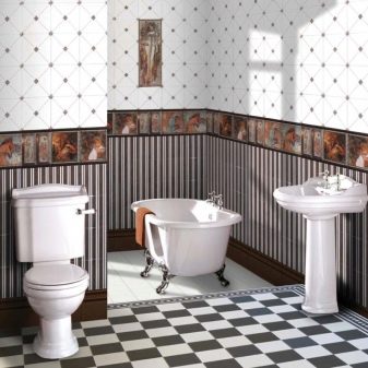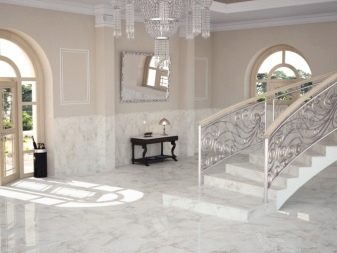 إذا كانت الغرفة مزينة بأسلوب كلاسيكي, ثم يمكنك اختيار البلاط المصمم من الرخام. هذا حل ممتاز وسري يتناسب بشكل عضوي مع الداخل تحت الكلاسيكيات. بالإضافة إلى ذلك ، تعتبر الطرز التي تتميز بتصميم بسيط ونغمة أساسية واحدة بنمط غير ظاهر مثالية لهذا النمط. يمكن أن تكون مونوغرامات إمبراطورية أو نماذج مخططة..