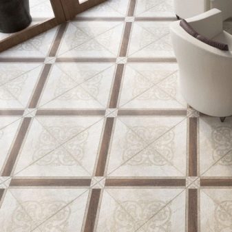 لا يحمي هذا البلاط جيدًا من الرطوبة فحسب ، بل يوفر أيضًا عزلًا صوتيًا عالي الجودة ومقاومة للحريق. يمكن وضعها على أرضية دافئة. بجانب, هذا البلاط غير قابل للانزلاق ومناسب لأي غرفة تقريبًا. يمكنها تقليد الخشب الطبيعي. يقدم المصنعون نماذج مثيرة للاهتمام بنسيج منقوش ، يكرر بصريًا الأرضيات الخشبية..