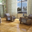 نسخة جديدة وحديثة تتضمن عدة طبقات في هيكلها. لذلك ، فهو يشمل رمل الكوارتز والألياف الزجاجية. للزينة ، يتم تطبيق نقش أعلى البلاط باستخدام تقنية طباعة الصور. من الأعلى مغطاة بطبقة واقية من البولي يوريثين.