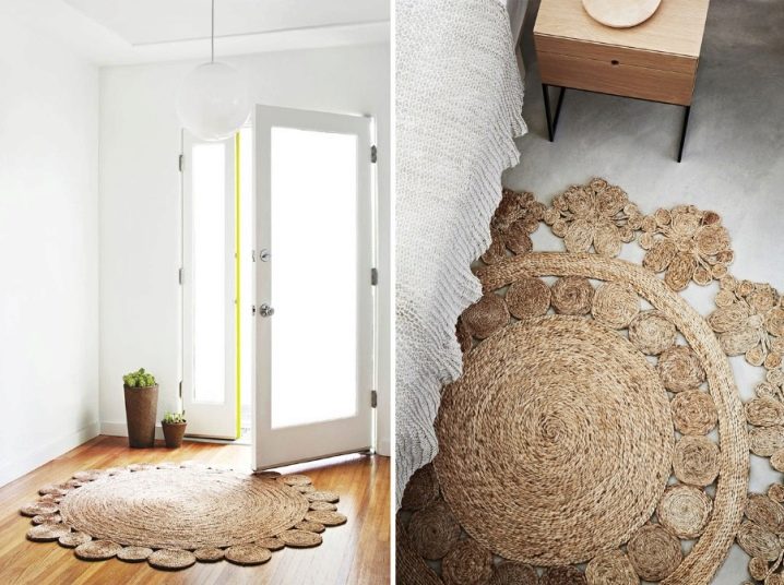 - مجموعة متنوعة من الأشكال ستصبح هذه السجادة أيضًا ميزة إضافية ، حيث يمكنك اختيار منتج مثالي لداخلك. بالإضافة إلى ذلك ، يتناسب الجوت بشكل جيد مع مواد السجاد الأكثر شيوعًا. لذلك ، تظهر المزيد والمزيد من النماذج المدمجة في السوق الحديثة..