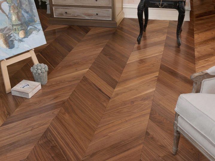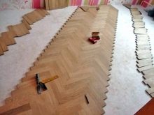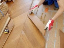 الشعبية هي تركيب الباركيه متعرجة, التي تبدو أنيقة للغاية. يسمح لك هذا النمط الموجود على الأرض بتوسيع الغرفة بصريًا. غالبًا ما تستخدم الألواح الصغيرة في كل من المساحات الواسعة والصغيرة. تبدو أكثر أناقة وتوسع المساحة..