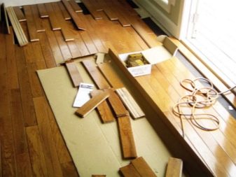 لكن خيار الأرضيات هذا له عيوب عديدة. لذلك ، إذا انسكبت كمية كبيرة من السائل على لوح خشبي ، فيجب استبدال غطاء الأرضية بالكامل ، لأن الترميم مستحيل. بالإضافة إلى ذلك ، يتم تقديمه بألوان ونسيج أبسط من نظيره في القطعة. عند وضع الألواح لن يكون من الممكن وضع نمط مثير للاهتمام بسبب حجمه.