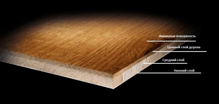 تتكون هذه المادة من عدة طبقات ، أعلاها زخرفي. إنه مصنوع من أنواع الخشب الصلب ويحدد مظهر الأرضية. الطبقة الوسطى عبارة عن قشرة خشب راتنجية. يحمي الأرضية من الرطوبة ويجعل الأرضية أكثر متانة. يوجد في الجزء السفلي من لوح الباركيه قاعدة من الخشب الرقائقي. غالبًا ما يستخدم خشب التنوب أو الصنوبر لتصنيعه. عادة لا تزيد سماكة الطبقة العليا عن 6 مم ، وبشكل عام ، يمكن أن يصل سمك لوح الباركيه إلى 20 مم.