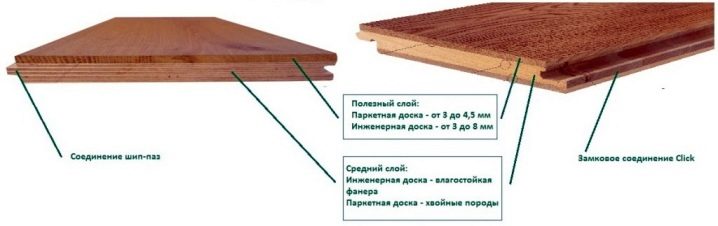يحتوي على العديد من إضافات السيليكون والمواد اللاصقة. تشير الشركات المصنعة إلى أن هذه المواد ليست ضارة بالإنسان ، لأنها لا تنبعث منها سموم أثناء العملية. لا يتطلب التثبيت تركيب أرضيات إضافية في الطابق السفلي منذ ذلك الحين, بفضل قاعدة الخشب الرقائقي الكثيفة ، يمكن وضعها بسهولة. وبالتالي ، فإن التثبيت بسيط للغاية عند مقارنته بتركيب الباركيه القوالب. تم تجهيز اللوح المصمم هندسيًا بأقفال ، وهو أكثر سمكًا: يبلغ سمك الطبقة العلوية حوالي 8 مم. إنه مغطى بالورنيش والقشط.