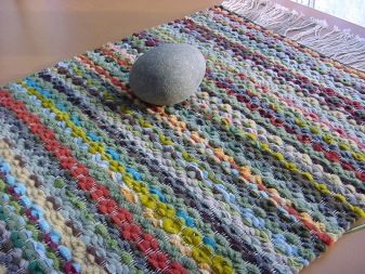 تتكون كل سجادة من قاعدة وكومة مختلفة التكوين. عادة ، في النماذج المصنوعة من الخيوط الطبيعية ، يكون الالتواء مصنوعًا من ألياف القطن ، في إصدارات صناعية ، يتم استخدام الفينيل أو المطاط. يتميز السجاد “المنزلي” المصنوع من وسائل مرتجلة بأساس أكثر إبداعًا: يتم استخدام الناموسيات وسجاد الحمام والأقمشة المحبوكة وخيوط الجرح متعددة الطبقات على إطار شبكي (في النماذج المصنوعة من شدات الورد).