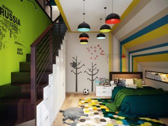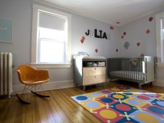 ليس من الضروري وضع السجادة على الأرض ، يمكنك استخدام عدة تفاصيل بشكل خلاق لتزيين الجدران في الحضانة..