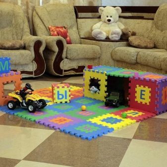 تستخدم سجادة الألغاز الآن بشكل أساسي في تصميم غرف الأطفال. إنه عملي ودائم وجذاب. الأطفال أثناء اللعب على هذا السطح يتمتعون بحماية موثوقة من الإصابة. إذا لم يكن الطفل قادرًا على المشي بعد ، فسيتم استخدام هذا الغطاء للزحف وسيحمي تمامًا من التلف..