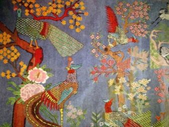 - الحرير. يبدو السجاد الحريري فاخرًا: ألوان اللوحات مشرقة وغنية ، والنمط يضيء ويتلألأ في الشمس. لا يتم استخدام هذه المنتجات الأنيقة على الأرض. إنها تزين الداخل وهي عنصر مستقل من عناصر الديكور كسجاد حائط أو غطاء أثاث..