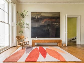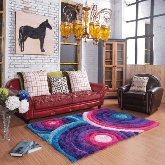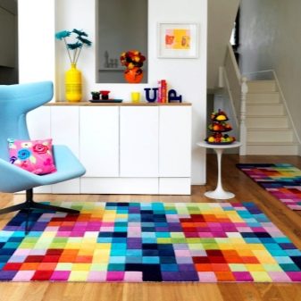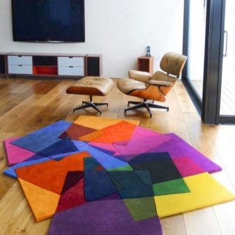 السجاد ، المكون من أجزاء مختلفة الألوان والقوام ، يروق الداخل ويضيف الحيوية. هناك طرق عديدة لوضع اللوحات ودمج المواد. سيكون عشاق الحلول الداخلية غير العادية مهتمين بالتأكيد بنماذج غير متماثلة متعددة الألوان.