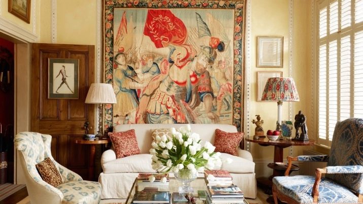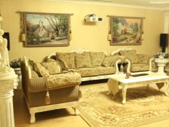 ل النمط الكلاسيكي من المعتاد وضع السجادة على رأس الأثاث (أريكة ، سرير). الكلاسيكية تعني نسيجًا ذو مناظر طبيعية أو حيوانات أو نسخة ذات لون واحد. عند اختيار نسيج أحادي اللون ، ضع في اعتبارك لون الجدران واختر كائنًا متباينًا.