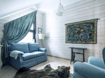 الطراز الحديث تعني زخرفة الشقة وجود نسيج صغير على الحائط وإنهاء الجدار بالكامل بالسجاد. في الإصدار الأخير ، يتم التركيز في الغرفة على الحائط حيث يمكنك إنشاء ركن صغير للشيشة أو منطقة للقراءة. يمكن أن يكون الغلاف إما بطباعة حيوان أو نبات أو بشيء فني. يشير التصميم الحديث للشقة بأسلوب دور علوي إلى وجود غطاء حائط أحادي اللون أو منقوش. لا يؤدي هذا الكائن وظيفة زخرفية فحسب ، بل يمكن أيضًا أن يكون بمثابة عزل للضوضاء والبرودة. سجادة القماش (نسيج) تبدو متناغمة على خلفية البناء بالطوب والأجهزة الحديثة والأثاث.
