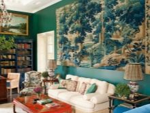 - عند تزيين الحائط بنسيج ، من المهم الانتباه إلى بقية المنسوجات في الغرفة. في غرفة النوم – لأغطية السرير ، في غرفة المعيشة – للستائر ومفارش المائدة والوسائد. يجب أيضًا أن تكون متوافقة مع بعضها البعض ؛