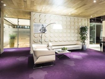 - لون أرجواني غامض للغاية وصوفي وغامض ، مثل هذا الغطاء الأرضي سيؤكد على أصالة المالك ، ومع ذلك ، يجب تجنب التوليفات مع الأحمر والأصفر والأسود.