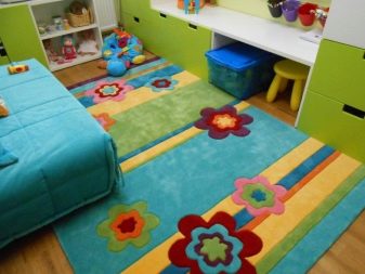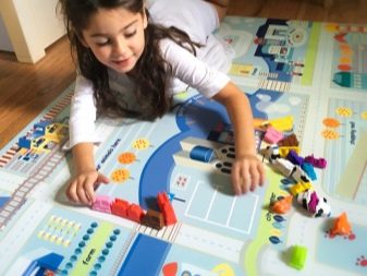 يمكن أن يكون السجاد الحديث لغرفة الأطفال غير قياسي ومتعدد الوظائف. يمكن أن يكون بعضها غطاء أرضي ومنطقة لعب وعنصرًا متطورًا في نفس الوقت. نحن نتحدث عن النماذج التي تصور الحروف والأرقام أو مصنوعة من عدد من الأجزاء ، وتقليد الفسيفساء أو اللغز بنمط مثير للاهتمام. تساهم خيارات الطلاء هذه في تطوير القدرات البصرية واللمسية للطفل ، الذي بدأ بالفعل في سن مبكرة في وضع اللعبة في تدريب المهارات الحركية الدقيقة لليدين. من خلال إدراك مثل هذه الرسومات ، يبدأ الطفل في تذكر الألوان والظلال والحروف والأرقام والأشكال الهندسية المختلفة وتمييزها..
