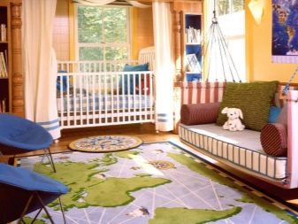 إذا وقع الاختيار على سجاد أصغر ، يمكنك اختيار عدة نماذج لمناطق مختلفة من الحضانة. الشيء الرئيسي هو الجمع بين أنماطها وألوانها بشكل صحيح. يجب ألا يفرطوا في تحميل الغرفة بالألوان ، لأن غرفة الأطفال عادة ما تكون مشرقة بدرجة كافية ، ويجب ألا تتعب عيون الطفل من التلوين..
