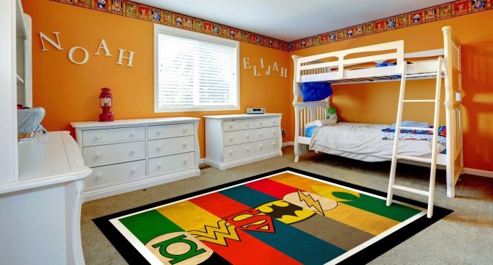 يُعتقد أن تصميم غرفة الأطفال يجب أن يكون مشرقًا ، وغالبًا ما يتم توفير هذا السطوع من خلال عناصر مثل ورق الحائط ، وتركيبات الأثاث ، والملصقات ، والألعاب ، وبالطبع السجادة..