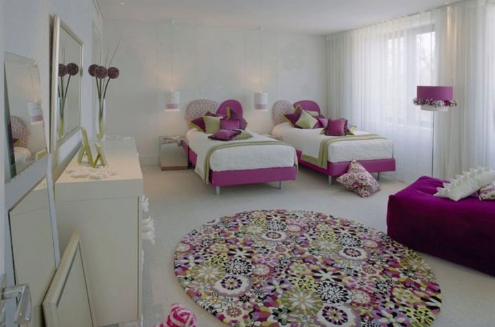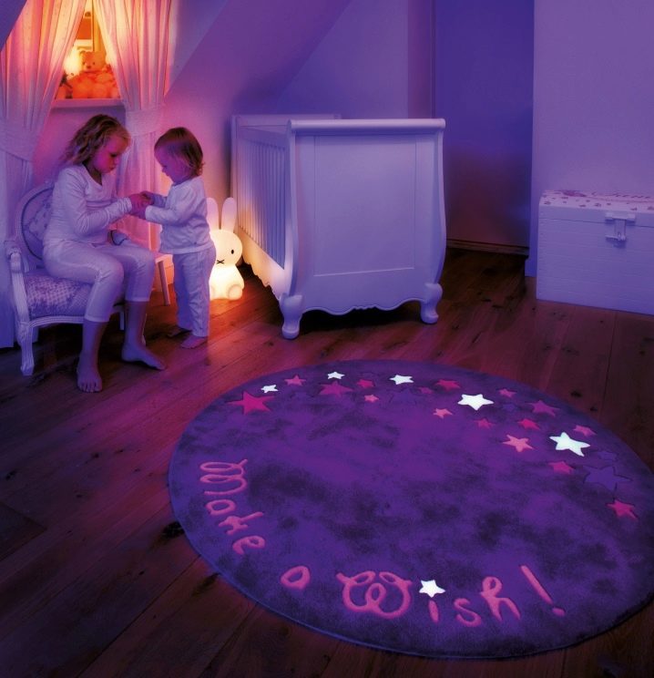 في الحضانة ، يمكنك استخدام سجادة أرجوانية مع رسومات. خلال النهار ، ينطلق من الجدران والأثاث المضاء ، لكن الأمر يستحق تعتيم الضوء – تخلق الإضاءة الأرجوانية للمصباح الليلي جوًا غامضًا ، وسوف تتناسب السجادة معه بنجاح. يُعتقد أن هذا الظل يساهم في تنمية الخيال ، وهذا مهم للأطفال..