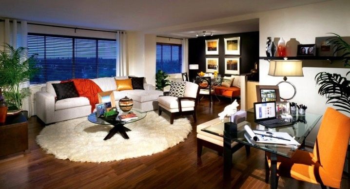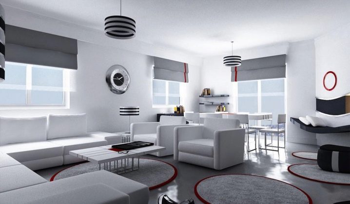 - شيوع يفترض الإيجاز ، لذلك عادة ما يتم استخدام الألوان أحادية اللون لذلك. من ناحية أخرى ، إذا كانت الغرفة بأكملها مزينة باللونين الأسود والأبيض ، فإن السجادة ، على العكس من ذلك ، يمكن أن تصبح لهجة مشرقة ، ولكن يجب أن تكون أحادية اللون ؛