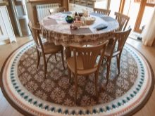 إذا كانت السجادة مستديرة ، فأنت بحاجة إلى حساب القطر ومقارنتها بأبعاد الغرفة لفهم ما إذا كانت مناسبة هناك..