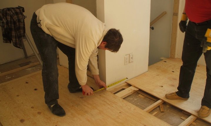 هناك طريقة أكثر شاقة ورخيصة إلى حد ما وهي تثبيت ألواح الألواح الليفية. يمكنك تسوية القاعدة باستخدام ألواح الخشب الرقائقي أو اللوح أو OSB من الفئة الثالثة أو الرابعة. يجب أن يؤخذ في الاعتبار أنه عند التجفيف الرطب واللاحق ، فإن اللوح واللوح الليفي يغيران شكلهما ، وهو ما لا يتم استعادته. لذلك ، يتم استخدامها في الغرف الجافة حيث لا يتم استخدام السباكة..
