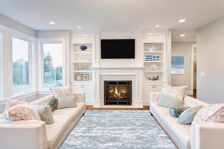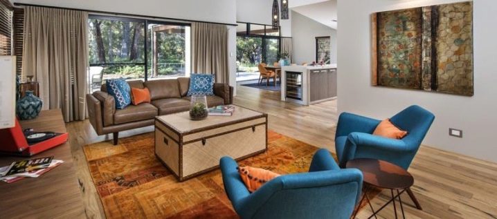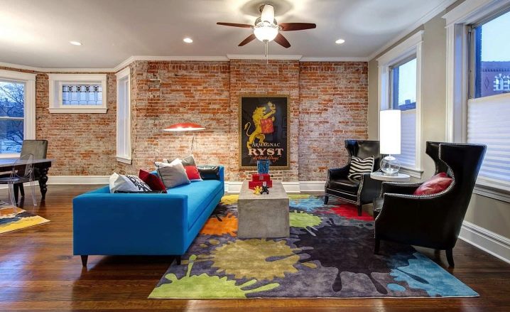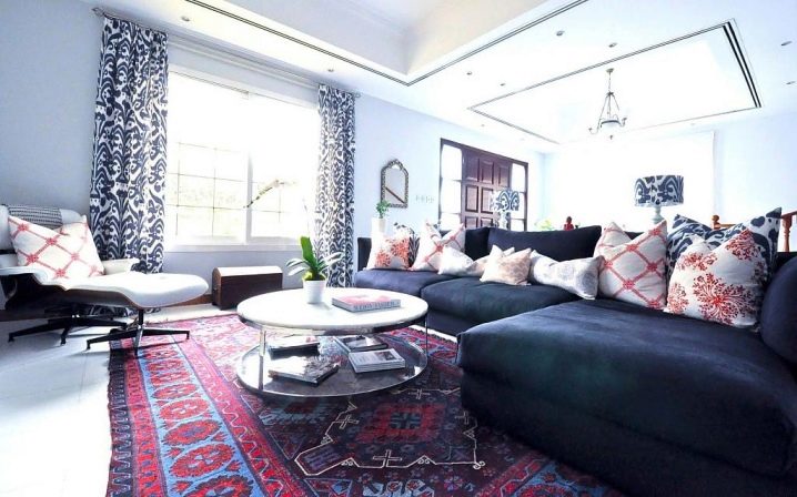 للحصول على طراز حديث ، يمكنك شراء سجاد من أي شكل ولون. لا توجد قواعد ومبادئ صارمة هنا..